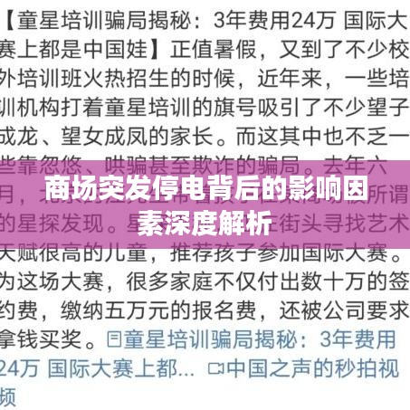 在现代化社会中,电力供应对于商场的正常运营至关重要,商场突发停电作为一种常见现象,时常会给商场管理、消费者及商户带来诸多困扰,本文旨在探讨商场突发停电的影响因素,以便为预防与应对提供借鉴。