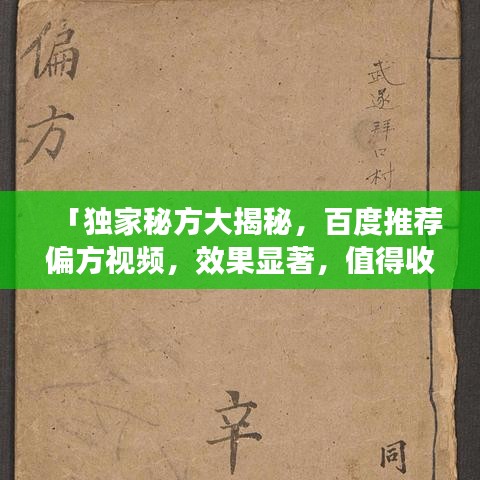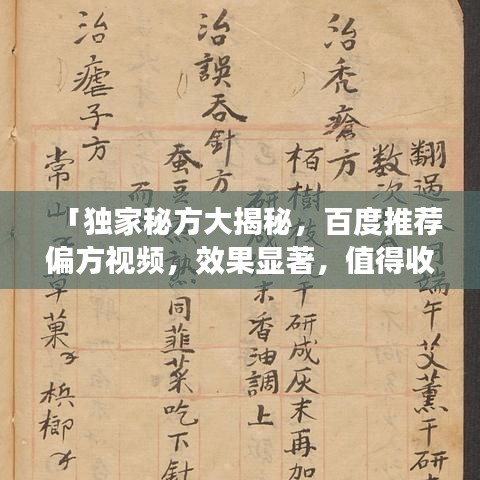 「独家秘方大揭秘,百度推荐偏方视频,效果显著,值得收藏!」